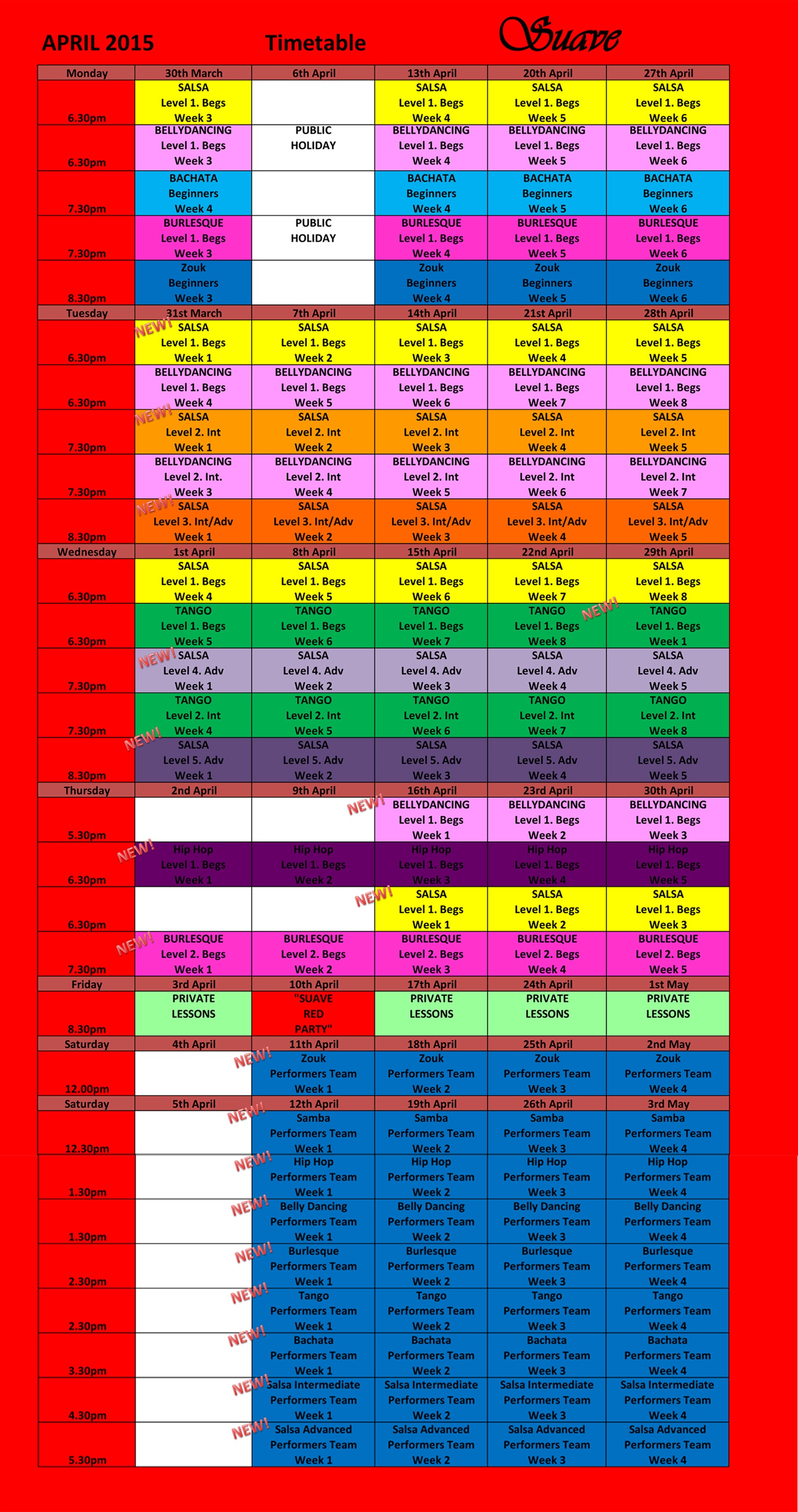 April 2015 Timetable